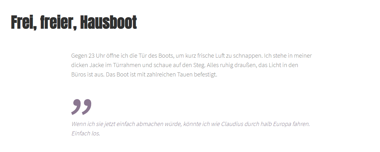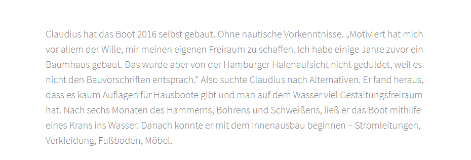 Geschichten über alternative Wohnformen – über die berichtet das Online-Magazin Zukunftswaende der LBS. Für einen Beitrag habe ich auf einem Hausboot übernachtet und darüber eine Reportage geschrieben, die ich auch fotografisch dokumentiert habe.